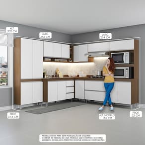 A Cozinha Sabrina Modulada foi desenvolvida para atender todas as suas necessidades do dia a dia com um design moderno, funcionalidade e versatilidade. A Cozinha Modulada e a tendencia do momento e foi arquitetada com modulos uteis que vao facilitar a sua rotina diaria, preparos dos alimentos e armazenamento dos utensilios e mantimentos, mantendo sua cozinha sempre organizada. Por se tratar de armarios de cozinha modulados voce pode ajustar os modulos conforme o espaco disponivel e montar diversas modulacoes diferentes para deixar o ambiente muito mais aconchegante. A elegancia fica por conta dos puxadores em perfil e os pes dando um toque unico de sofisticacao. A Cozinha Sabrina e produzida com materiais de excelente qualidade, garantindo a durabilidade e vida util. O melhor em moveis no design atual aliando conforto, qualidade e otimos precos!