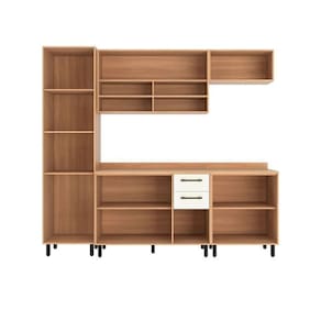 A Cozinha Modulada Havana Casamia é fabricada em 100% em MDP, puxadores em ABS, corrediças telescópicas, pés com regulagem de altura e tampos de 25mm de espessura. Disponível em duas opções de cores Rovere/Grafite ou Rovere/Champanhe.