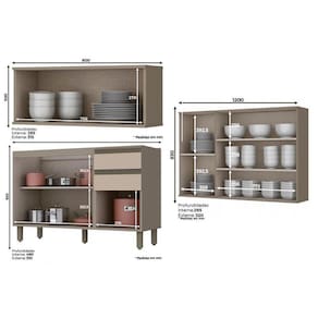 Cozinha Completa Connect 6 Peças (1 Armário + 1 Balcão + 1 Paneleiro + 3 Complementos) C6P04 Duna/Cristal - Henn