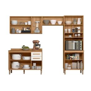 Cozinha Modulada Intenza Nubia 4 Peças Freijó/off White Cristal - Nicioli Freijó/off White Cristal Cozinha Modulada Intenza Nubia 4 Peças - Nicioli A Cozinha Modulada Intenza Nubia 4 Peças da Nicioli é perfeita para quem busca um ambiente moderno e funcional. Com estrutura em MDP e pintura UV, oferece resistência e durabilidade. Suas portas possuem dobradiças metálicas para maior segurança, sendo duas delas com vidro reflecta e puxadores em poliestireno, agregando sofisticação ao design. As gavetas contam com corrediças telescópicas, garantindo um deslizamento suave e preciso. O espaço interno é bem distribuído com prateleiras que facilitam a organização, além de um compartimento dedicado para eletrodomésticos. Os puxadores em MDF complementam o visual elegante, enquanto os pés em ABS com regulagem de altura proporcionam estabilidade. Para maior praticidade, acompanha tampo em MDP de 15mm, tornando-se uma excelente opção para compor sua cozinha com estilo e eficiência. ESPECIFICAÇÕES: - Estrutura MDP - Pintura UV - Portas - Dobradiças metálicas - Vidro reflecta em 2 portas - Puxadores em poliestireno nas portas com vidro reflecta - Gavetas - Corrediças telescópicas - Interna com prateleiras - Espaço para eletrodoméstico - Puxadores em MDF - Acompanha tampo em MDP de 15mm - Pés em ABS com regulagem de altura