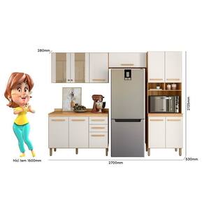 O ambiente é composto por (L x A x P): 1x Armário Aéreo Intenza 120cm: 120 x 63,5 x 28 cm 1x Armário Aéreo Geladeira Intenza 80cm: 80 x 31,7 x 28 cm 1x Torre Quente Paneleiro Intenza 70cm: 70 x 212,5 x 53 cm 1x Balcão de Cozinha Intenza 120cm: 120 x 92,5 x 53 cm