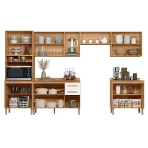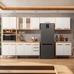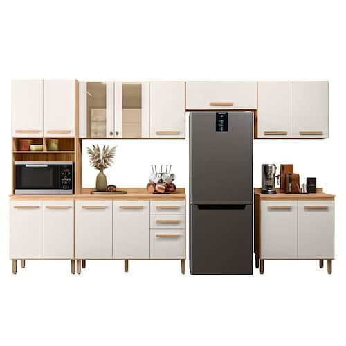 Cozinha Modulada Intenza Ravena 6 Peças Freijó/off White Cristal - Nicioli Freijó/off White Cristal