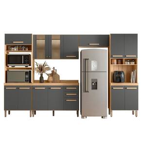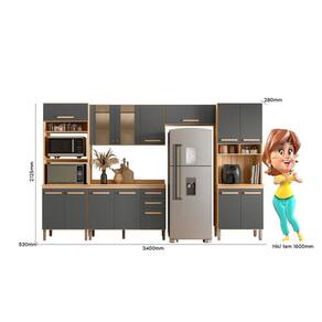 Cozinha Modulada Intenza Zoe 5 Peças Freijó/chumbo - Nicioli Freijó/chumbo Cozinha Modulada Intenza Zoe 5 Peças - Nicioli A Cozinha Modulada Intenza Zoe 5 Peças da Nicioli é perfeita para quem busca um ambiente moderno e funcional. Com estrutura em MDP e pintura UV, oferece resistência e durabilidade. Suas portas possuem dobradiças metálicas para maior segurança, sendo duas delas com vidro reflecta e puxadores em poliestireno, agregando sofisticação ao design. As gavetas contam com corrediças telescópicas, garantindo um deslizamento suave e preciso. O espaço interno é bem distribuído com prateleiras que facilitam a organização, além de um compartimento dedicado para eletrodomésticos. Os puxadores em MDF complementam o visual elegante, enquanto os pés em ABS com regulagem de altura proporcionam estabilidade. Para maior praticidade, acompanha tampo em MDP de 15mm, tornando-se uma excelente opção para compor sua cozinha com estilo e eficiência. ESPECIFICAÇÕES: - Estrutura MDP - Pintura UV - Portas - Dobradiças metálicas - Vidro reflecta em 2 portas - Puxadores em poliestireno nas portas com vidro reflecta - Gavetas - Corrediças telescópicas - Interna com prateleiras - Espaço para eletrodomésticos - Puxadores em MDF - Acompanha tampo em MDP de 15mm - Pés em ABS com regulagem de altura