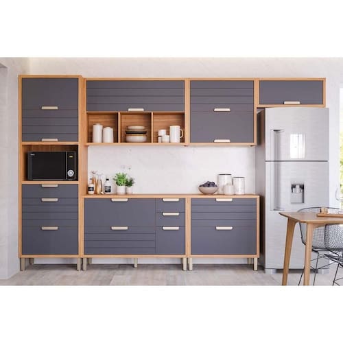 Cozinha Modulada MGM Eloise 6 Peças (3Aéreos+2Balcões+1Paneleiro) CZ026 Freijo/Titanium-MGM - Blush
