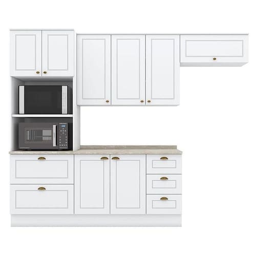 Cozinha Modulada Nova York 4 Peças Branco com Tampo Calcare Henn