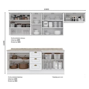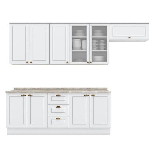 Cozinha Modulada Nova York 6 Peças Branco com Tampo Calcare Henn