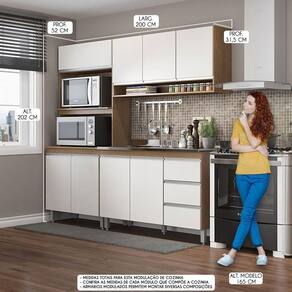 Cozinha Modulada Para Kitnet 200x202cm 3 Pçs Mdp Menu Móveis Branco A Cozinha Sabrina Modulada foi desenvolvida para atender todas as suas necessidades do dia a dia com um design moderno, funcionalidade e versatilidade. A Cozinha Modulada e a tendencia do momento e foi arquitetada com modulos uteis que vao facilitar a sua rotina diaria, preparos dos alimentos e armazenamento dos utensilios e mantimentos, mantendo sua cozinha sempre organizada. Por se tratar de armarios de cozinha modulados voce pode ajustar os modulos conforme o espaco disponivel e montar diversas modulacoes diferentes para deixar o ambiente muito mais aconchegante. A elegancia fica por conta dos puxadores em perfil e os pes dando um toque unico de sofisticacao. A Cozinha Sabrina e produzida com materiais de excelente qualidade, garantindo a durabilidade e vida util. O melhor em moveis no design atual aliando conforto, qualidade e otimos precos! CARACTERISTICAS TECNICAS: Produzida em MDP de 15 mm Acabamento UV Portas com Dobradica Metalica Porta Basculante com Pistao a Gas Gavetas com Corredica Telescopica Puxadores Perfil em ABS Pes com Regulagem em ABS NAO acompanha TAMPO e PIA