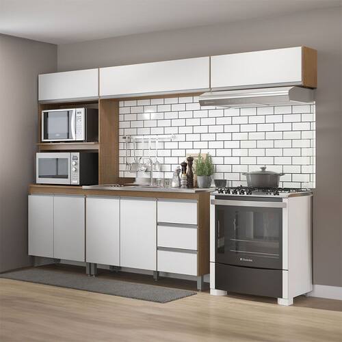 O Balc?o Pia da Cozinha Sabrina foi desenvolvido para atender todas as suas necessidades di?rias com um design moderno, cheio de personalidade, beleza e versatilidade. Por se tratar de arm?rios de cozinha modulados voc? pode ajustar os m?dulos conforme o espa?o dispon?vel e montar diversas modula??es diferentes para deixar o ambiente muito mais aconchegante. A eleg?ncia fica por conta dos puxadores em perfil e os p?s na cor prata dando um toque ?nico de sofistica??o. Produzido com materiais de excelente qualidade, garantindo a durabilidade e vida ?til. O melhor em m?veis no design atual aliando conforto, qualidade e ?timos pre?os, s? na Menu M?veis!