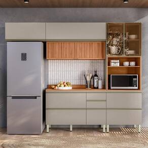 Cozinha Modulada Proença 4 Peças com Aéreo 120cm Ripado - Demartêz