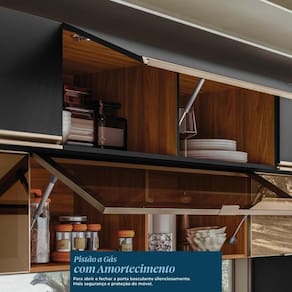 A Cozinha Modulada Proença 8 Peças com Cristaleira une sofisticação, resistência e praticidade em cada detalhe. Produzida em MDF com pintura UV, conta com portas, sendo 4 com vidro reflecta, dobradiças com amortecimento, pistão a gás e puxadores metálicos que garantem durabilidade e suavidade no uso. Possui gavetas com corrediças telescópicas, divisor de talheres no balcão de 120cm, tampos em MDF nos balcões de 120cm e 60cm, além de espaço ideal para forno e micro-ondas. Com pés reguláveis e amplo espaço interno, é perfeita para deixar sua cozinha bem organizada e elegante.