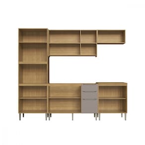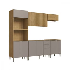 Cozinha Modulada 5 pe?as Ripada sem Tampo Laura Cadorin M?veis, incluindo balc?es,paneleiro e arm?rios a?reos com um total de 3 gavetas e 11 portas, prateleiras com acabamento em pintura UV. As corredi?as s?o telesc?picas e as dobradi?as slowmotion com caneco de 35mm. A estrutura ? feita em MDP 15mm, com p?s de polipropileno e puxadores. A escolha perfeita e elegante para sua cozinha.