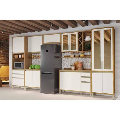 Cozinha Completa Tempranillo 9 Peças (3Aéreos+2Balcões+1Paneleiro+1TorreQuente+2Complementos) C9P22 Amendoa/Off White - Ronipa Abaixo segue os produtos que compoem o KIT: