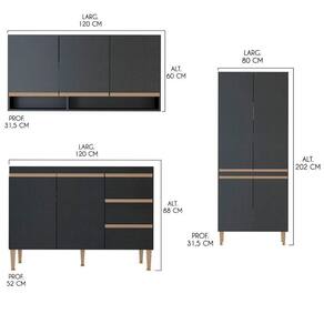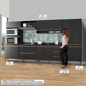 Cozinha Modulada Sabrina 360x202cm com 6 Pecas em MDP Preto Menu Moveis