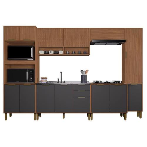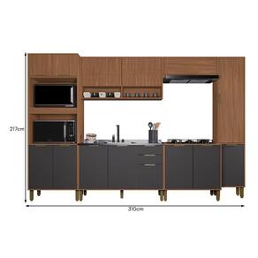 O ambiente é composto por (L x A x P): 1x Torre Quente Toronto 70cm 2 Fornos: 70 x 217 x 50 cm 1x Armário Aéreo Toronto 120cm 2 Portas Ripado: 120 x 61 x 30 cm 1x Armário Aéreo Geladeira Toronto 80cm 1 Porta Basculante: 80 x 30 x 30 cm 1x Balcão de Cozinha Toronto 120cm: 120 x 80 x 50 cm (Não acompanha tampo e pia/cuba) 1x Balcão para Cooktop Toronto 80cm: 80 x 81,5 x 51 cm (Acompanha tampo em MDP) 1x Paneleiro Toronto 40cm: 40 x 217 x 30 cm