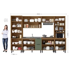 Medida de cada item (A x L x P): Cristaleira 230x70x51,6cm; Aereo 1200 74x120x29cm; Balcao Pia 89,5x120x51,6cm; Aereo 37x80x29cm; Balcao 91,7x80x51,6cm; Paneleiro 1 forno 230x70x51,6cm