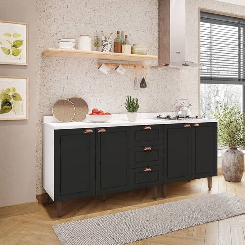 A Cozinha Pérola Compacta possui 2 peças com altura de 93,7 cm largura de 200 cm e profundidade de balcão de 52 cm. Com portas e gavetas em MDF usinadas em baixo relevo, possui estilo Americano e design contemporâneo, funcional e prático para seu dia a dia. Seus puxadores são no formato de concha. Possui dobradiças 3,5cm Slide On (sistema de amortecimento anti batida) e na porta basculante possui além das dobradiças Slide On pistão para proporcionar uma maior abertura. Acompanha Tampo. Acabamento da Prateleira: Pintura UV Escala de Brilho da Prateleira: Fosco Acabamento da Gaveta: Pintura UV Escala de Brilho da Gaveta: Fosco Material do Puxador da Gaveta: Plástico Acabamento da Porta: Pintura UV Escala de Brilho da Porta: Fosco Material do Puxador da Porta: Plástico Acabamento dos Pés: Poliéster Acompanha Rodapé Decorativo: Não Acompanha Tampo: Sim Altura dos Pés: 17 cm Altura Máxima dos Pés: 17.0000 Ambiente Principal: Cozinha Balcão Suporta Pia: Sim codigo_ean: 7900288013200 Complexidade da Montagem: Média: pode ser montado por mais de uma pessoa e/ou necessite de maior conhecimento para montagem Cor: Branco/Preto Cor do Produto: Branco/Preto Cor Flex: não Cor Interna: Branco Escala de Brilho: Fosco Espessura do Material da Estrutura: 15 mm Espessura do Tampo: 27 mm Gaveta com Chave: Não Itens Inclusos: 1 móvel desmontado + kit de ferragens + termo de garantia + manual de montagem. Linha ou Coleção: Pérola Manual de Montagem e Instalação: https://product-hub-prd.madeiramadeira.com.br/966696/documents/23520166-d4d2-4d84-a427-0fd01c361f2825140314933173023122553.pdf Marca: Yescasa Material da Dobradiça/Corrediça da Porta: Metálica Material da Gaveta: MDF Material da Porta: MDF Material da Prateleira: MDP Material do Tampo: MDP Material dos Pés: Plástico Medida de cada item (A x L x P): Balcão 2 portas 3 gavetas: 84 x 120 x 50,5 Balcão 2 portas: 93,7 x 80,2 x 52,5 Aéreo 3 portas: 67 x 120 x 36,5 modular: Sim Montagem Flex: sim Necessita Montagem: Sim O Balcão Acompanha Pia: Não Origem do Produto: Nacional Pés Reguláveis: Sim Peso: 70,18 kg Peso Máximo por Gaveta: 5 kg Peso Máximo por Prateleira: 10 kg Possui Pés: 09 Possui Portas: Sim Possui Prateleiras: Sim Possui recorte para Cooktop: Não Possui Rodízio: Não Possui Vidro: Não Produto Montado: Sim Recomendações de Uso, Manutenção e Limpeza: Utilize um pano macio umedecido com água e sabão neutro, seguido de pano seco. Não utilize produtos químicos ou abrasivos para limpeza, pois estes danificam o revestimento do móvel. Sapatas Niveladoras: Sim Sistema de Montagem: Cavilha, parafuso, minifix e prego Suporta Até (kg): 10 kg Tamanho Indicado da Pia: L: 120 x P: 52 cm Tamanho Indicado do Tampo ou Pia: L: 120 x P: 52 cm Tipo de Corrediça da Gaveta: Metálica Telescópica Tipo de Dobradiça da Porta: Soft close Tipo de Puxador da Gaveta: Externo Tipo de Puxador da Porta: Externo