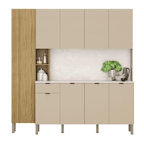 O Armário possui 9 portas e 1 gaveta com corrediças telescópicas destaca-se por sua praticidade e eficiência de uso, podendo ser utilizada como complemento de cozinha.