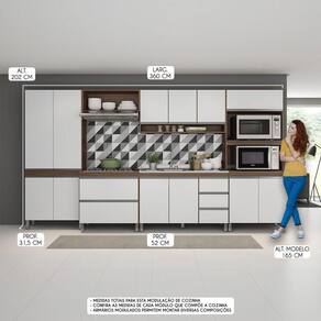Cozinha Sabrina Balcão Pia Paneleiro Branco Menu Móveis Branco A Cozinha Sabrina Modulada foi desenvolvida para atender todas as suas necessidades do dia a dia com um design moderno, funcionalidade e versatilidade. A Cozinha Modulada e a tendencia do momento e foi arquitetada com modulos uteis que vao facilitar a sua rotina diaria, preparos dos alimentos e armazenamento dos utensilios e mantimentos, mantendo sua cozinha sempre organizada. Por se tratar de armarios de cozinha modulados voce pode ajustar os modulos conforme o espaco disponivel e montar diversas modulacoes diferentes para deixar o ambiente muito mais aconchegante. A elegancia fica por conta dos puxadores em perfil e os pes na cor prata dando um toque unico de sofisticacao. A Cozinha Sabrina e produzida com materiais de excelente qualidade, garantindo a durabilidade e vida util. O melhor em moveis no design atual aliando conforto, qualidade e otimos precos, so na Menu Moveis! Caracteristicas: Produzida em MDP de 15 mm Acabamento UV na cor Branco e Avela Portas com Dobradica Metalica Porta Basculante com Pistao a Gas Gavetas com Corredica Telescopica Puxadores Perfil em ABS na cor Prata Pes com Regulagem em ABS na cor Prata Balcao para Cooktop possui Tampo com Ranhura que pode ser utilizado com cooktop de 5 bocas, caso nao cortar pode utilizar normalmente. NAO acompanha TAMPO e PIA