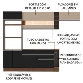 - Profundidade: Balcões e paneleiro 52cm | Aéreos 31cm