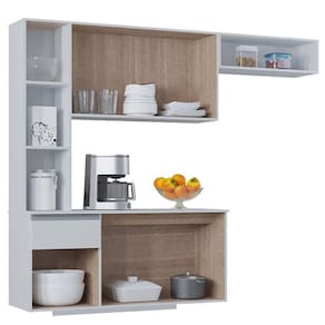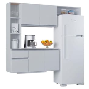 Cozinha Suspensa com Balcão Mel 163 cm Branco Poquema