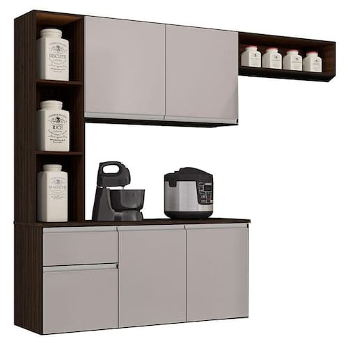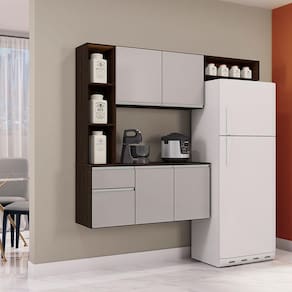 Cozinha Suspensa com Balcão Mel 163 cm Chocolate Off White – Poquema