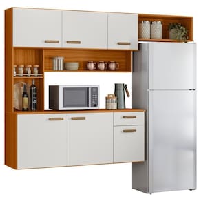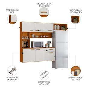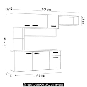 Composta por seis portas, uma gaveta e uma prateleira interna, essa Cozinha Suspensa oferece excelente capacidade de armazenamento. As dobradiças e corrediças metálicas proporcionam uma abertura suave e segura, enquanto os puxadores em polímero adicionam um toque sofisticado que harmoniza com diversos estilos de decoração.