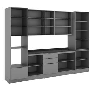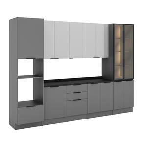A cozinha Lumina apresenta um projeto contemporâneo que une funcionalidade, elegância e excelente aproveitamento de espaço. Com 2,40 m de altura, o conjunto conta com acabamento em lacca, rodapé em PVC e um visual sofisticado, marcado pelo contraste entre o cinza intenso da estrutura e o cinza claro das portas. Composta por seis módulos, oferece ampla capacidade de armazenamento e flexibilidade na composição, facilitando a organização da cozinha no dia a dia. A qualidade construtiva se evidencia nos detalhes, como dobradiças de 35 mm com amortecimento, corrediças telescópicas com extração total e puxadores slim em alumínio preto, que reforçam o estilo moderno do conjunto. O balcão possui 97 cm de altura, garantindo conforto e ergonomia no uso diário.