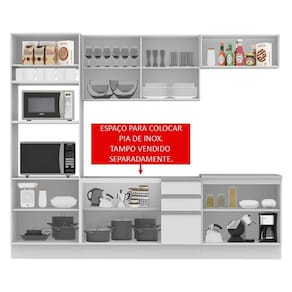- Espaço para forno, micro-ondas, fogão, depurador, louças, panelas, utensílios, compras do mês e o que mais você preferir.
