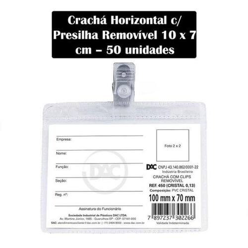 Crachá Horizontal com Presilha Removível 10 x 7 cm – 50 unidades
