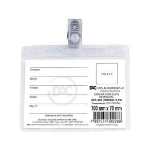 Detalhes:Crachá em PVC Cristal em espessura 0,13, horizontal e com presilha removível.