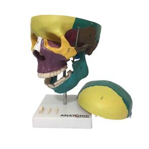 O modelo TGD-0102-A permite: Estudo detalhado das estruturas externas e internas do crânio. Abertura da mandíbula. Remover três dentes (incisivo, canino e molar). Remover calota craniana, possibilitando a visualização da estrutura interna do crânio. Visualizar suturas cranianas. O estudo do crânio auxiliado pelas cores e números, classificados no manual do usuário.