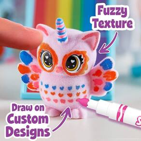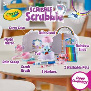 Partendo em uma aventura mágica com o Crayola Scribble Scrubbie Cloud Clubhouse. Com 2 estatuetas de animais laváveis, 1 banheira, 1 escova de esfoliação e um estojo portátil de transporte arco-íris, este conjunto de brinquedos está pronto para o jogo criativo onde quer que você vá. Os jovens exploradores vão adorar descobrir o místico Uni-Owl e Uni-Koala cujos casacos são agrupados rosa e azul, respectivamente, apenas esperando para serem decorados! Use os marcadores laváveis incluídos para adicionar desenhos exclusivos a cada animal de estimação peculiar. Quando estiver pronto para algo novo, simplesmente enxágue com água e use o pincel para começar de novo! Artistas com 3 anos ou mais podem usar os marcadores coloridos não tóxicos para colorir, lavar e repetir quantas vezes quiserem! Colete ainda mais brinquedos de animais para crianças com Pacotes de Expansão Scribble Scrubbie (vendidos separadamente).