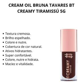 Um óleo labial cremoso com cobertura de cor natural e enriquecido com ativos hidratantes. Possui textura sérum leve cremosa e acabamento super confortável. O BT Creamy é uma experiência que colore, nutre e hidrata os lábios. Venha se deliciar com a textura cremosa ultra confortável e com tonalidades diversas inspiradas em sobremesas. Convidamos os seus lábios a se deliciarem na nossa BT Patisserie. As microesferas de Ácido Hialurônico são responsáveis pelo preenchimento de linhas finas, pelo boost de hidratação e retenção da água na pele. O Extrato de Amora presente na composição é rico em alfa-hidroxiácidos, que promovem o equilíbrio da renovação celular, além de maciez e vitalidade. O uso contínuo garante uma aparência mais saudável. O BT Creamy conta com Óleo de Algodão, que previne e trata a descamação e o ressecamento dos lábios, além de garantir o equilíbrio da umidade e hidratação da pele