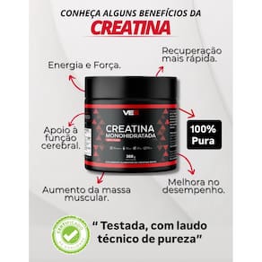 A Creatina Monohidratada VEE é um suplemento alimentar em pó indicado para quem busca complementar a alimentação com creatina de alta pureza. Cada porção fornece 3 g de creatina, e pode ser usada como parte de uma rotina alimentar voltada para exercícios físicos de alta intensidade e curta duração. Sua composição é livre de aditivos desnecessários, sendo uma opção prática para uso diário.