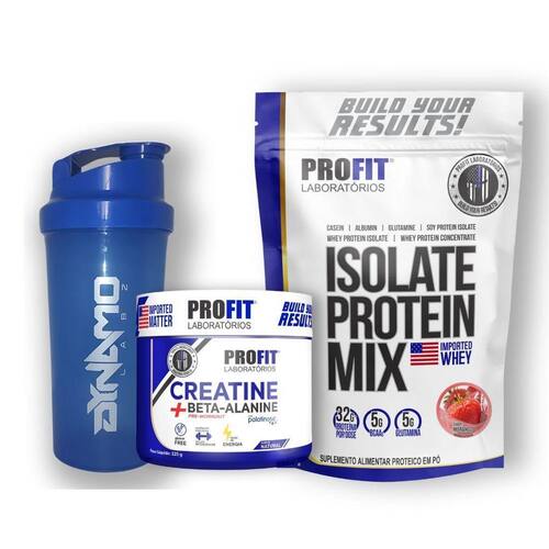 Kit Creatina + Beta-Alanina 300g Sabor: Natural e Isolate Protein Mix 900g Profit Laboratórios + Coqueteleira 600ml Dynamo Labz