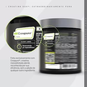 Extraordinariamente pura, feita exclusivamente com Creapure®, creatina monohidratada alemã, reconhecida por sua eficiência, sem a adição de qualquer outro ingrediente. DUX Creatina® é feita sob controle de qualidade de excelência, para assegurar rigorosamente a procedência e origem nobre do produto.