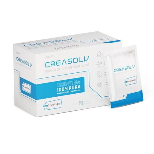 A Creasolv é uma creatina altamente solúvel por ser monohidratada e micronizada. É a escolha ideal para otimizar resultados. Além de sua tecnologia, Creasolv é muito prático com sachês individuais de 3 gramas. Cada display contém 30 sachês de 3 g de creatina, facilitando a adesão ao uso, garantindo máxima eficácia sem desperdícios. A creatina auxilia no aumento do desempenho físico durante exercícios repetidos de curta duração e alta intensidade.