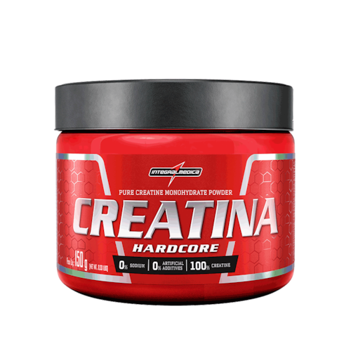 Ganhe volume e massa muscular, aumente sua força e melhore o desempenho e resistência nos seus treinos suplementando com a Creatina Hardcore Integralmédica. Produto 100% puro, de excelente qualidade. A creatina é um composto que pode ser produzido pelo nosso organismo, através do consumo de alimentos de origem animal como carnes e peixes mas também pode se suplementada na forma de creatina mono-hidratada. Tem importante papel no fortalecimento dos ossos, melhora o metabolismo e diminui a fadiga pós treino. Tem importante papel no fortalecimento dos ossos, melhora o metabolismo e diminui a fadiga pós treino. O uso da creatina está altamente relacionado com o aumento no volume do volume muscular e força.Com creatina, a sua resistência á cargas mais pesadas ficará fortalecida possibilitando aumenta de cargas para melhores resultados.. A Creatina Hardcore Integralmédica está disponível na versão pote 150 g e 300 g e Pouch de 1 kg.