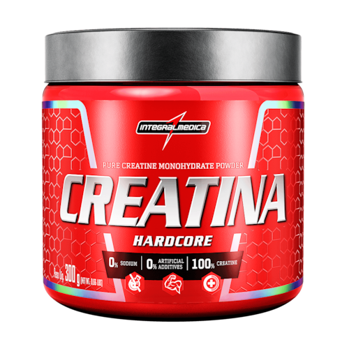 Ganhe volume e massa muscular, aumente sua força e melhore o desempenho e resistência nos seus treinos suplementando com a Creatina Hardcore Integralmédica. Produto 100% puro, de excelente qualidade. A creatina é um composto que pode ser produzido pelo nosso organismo, através do consumo de alimentos de origem animal como carnes e peixes mas também pode se suplementada na forma de creatina mono-hidratada. Tem importante papel no fortalecimento dos ossos, melhora o metabolismo e diminui a fadiga pós treino. Tem importante papel no fortalecimento dos ossos, melhora o metabolismo e diminui a fadiga pós treino. O uso da creatina está altamente relacionado com o aumento no volume do volume muscular e força.Com creatina, a sua resistência á cargas mais pesadas ficará fortalecida possibilitando aumenta de cargas para melhores resultados.. A Creatina Hardcore Integralmédica está disponível na versão pote 150 g e 300 g e Pouch de 1 kg.