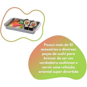 Possui diversos acessórios e funções que vão deixar a brincadeira mais completa! Um combinado de sushi com prato e hashi! Material resistente, interativo e aprendizado para a primeira infância. Imagens meramente ilustrativas.
