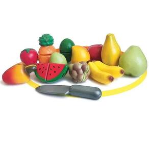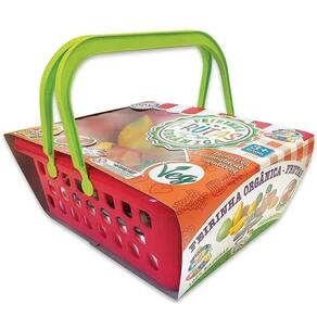 Cestinha com alças feirinha orgânica com 14 peças: 1 faca, 1 abacaxi,1 banana,1 caju,1 goiaba, 1 limão, 1 maçã, 1 mamão, 1 manga, 1 melancia, 1 morango,1 pera e 1 uva. Além de incentivar a alimentação saudável, todas as peças são de material termoplástico, não tóxico e é indicado para as crianças usarem toda a imaginação brincando e se divertindo de montão em todos os lugares.