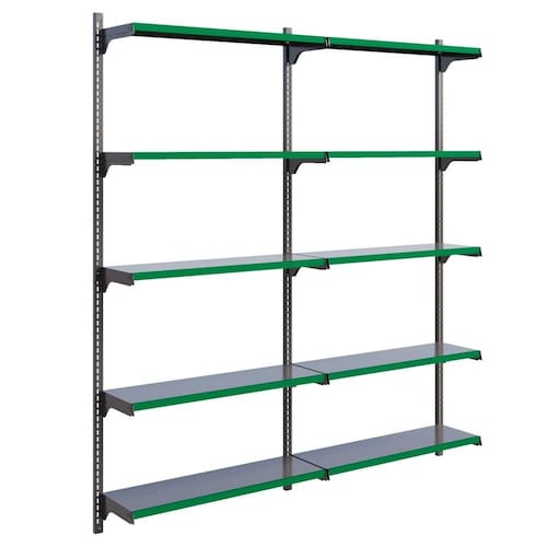 Cremalheira em aço para melhor custo benefício, acompanha bandejas com regulagem para melhor exposição dos produtos e porta etiquetas.