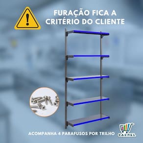 Cremalheira em aço para melhor custo benefício, acompanha bandejas com regulagem para melhor exposição dos produtos e porta etiquetas.