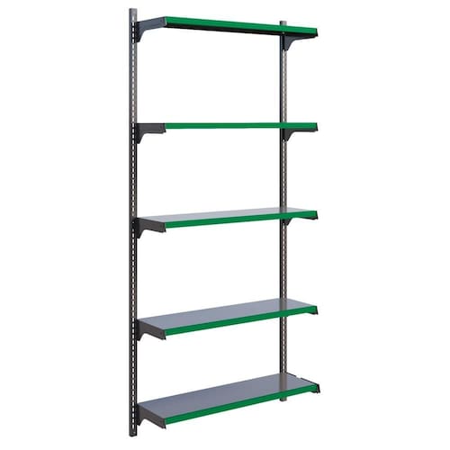 Cremalheira em aço para melhor custo benefício, acompanha bandejas com regulagem para melhor exposição dos produtos e porta etiquetas.