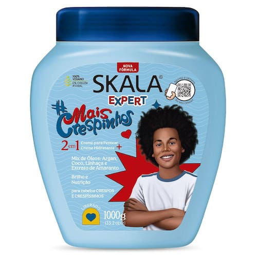 O Creme 2 Em 1 Skala Mais Crespinhos 1000g foi especialmente desenvolvido para facilitar a rotina de cuidados com cabelos crespos e crespíssimos. Possui ativos que levam nutrição, brilho e efeito antifrizz. Além disso é livre de sulfatos, parabenos, petrolato e óleo mineral. Ideal para modelar os fios de maneira suave sem deixar resíduos.