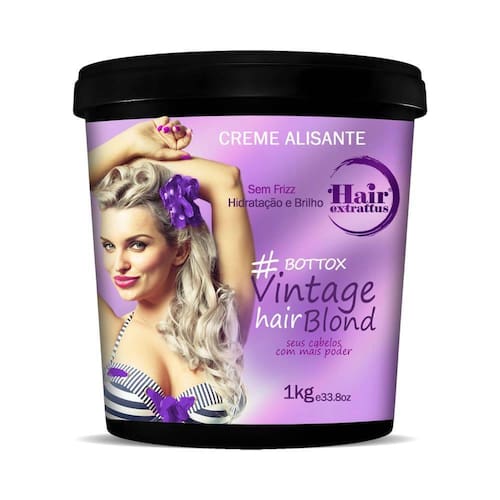 O Creme Alisante Bottox Vintage Hair Blond da Hair Exttratus é formulado especialmente para cabelos ondulados, crespos, cacheados ou com necessidade de suavização. O Creme foi elaborado com um blend de óleos, incluindo argan, ojon e macadâmia, e ativos que promovem a redução do volume e realinhamento dos fios através do preenchimento da fibra capilar.O Creme Alisante irá deixar seus cabelos sedosos e com um efeito liso natural, além de deixar os cabelos com um brilho incomparável. Tenha resultados de salão de beleza na sua casa com os cremes da Hair Exttratus.Características:- Cabelos lisos com efeito natural- Redução de volume e realinhamento dos fios- Produzido com um blend de óleos- Elaborado para cabelos cacheados, crespos e onduladosEspecificações TécnicasProduto: Creme AlisanteLinha: Bottox Vintage Hair BlondMarca: Hair ExttratusVolume: 1KgFormulação: Blend de óleos e ativosAção: Redução de volume e realinhamento dos fiosResultado: Cabelo liso com efeito naturalSobre a marcaA Hair Exttratus é uma marca brasileira fundada em 2009 com o objetivo de promover o bem-estar e a plena satisfação de seus clientes através da produção de produtos de alta qualidade. Atualmente a marca é uma das maiores indústrias de cosméticos da América Latina e conta com mais de 100 itens em seu portfólio.