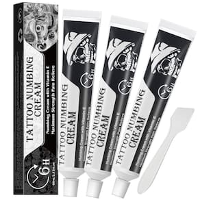 Creme anestésico de tatuagem indolor, creme anestésico para tatuagens extra forte — Para tatuagens, piercings e remoções — Pacote com 3 unidades de 2,12 onças — Efeito anestésico: o creme anestésico de tatuagem especialmente configurado fornece até 6 horas de dormência para aliviar a dor da tatuagem — Uso multiuso: multiuso e de grande capacidade, pode ser utilizado para tatuagens, piercings e depilação, etc. do processo de trabalho - Adequado para todos os tipos de pele: nosso creme anestésico para tatuagens é fácil de aplicar e remover sem deixar marcas ou sensação de oleosidade - Ingredientes seguros: este O creme anestésico de tatuagem é feito com ingredientes de alta qualidade para garantir ingredientes seguros que também não afetam a qualidade e os resultados da tatuagem. Fácil de usar: lave a área a ser tratada, aplique o creme anestésico para tatuagens e embrulhe em plástico por 50 a 60 minutos, espere a absorção terminar, depois limpe o excesso de creme e espere cerca de 20 minutos para obter o melhor efeito anestésico