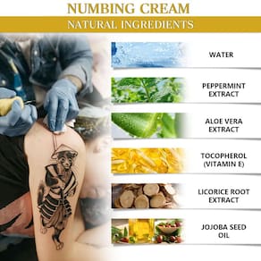 - Ingredientes seguros, calmantes e hidratantes: nosso creme anestésico contém essência de hortelã, extrato de aloe vera, tocoferol (vitamina E) para acalmar a área de trabalho, proporcionar um efeito hidratante, reduzir o ressecamento e manter a pele hidratada por muito tempo.