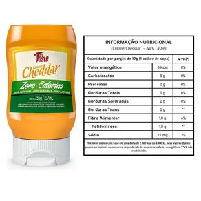 Os creme cheddar são produtos únicos e totalmente inovadores no mercado, para do queijo comum e , eles possuem todo o sabor do queijo, com zero calorias, zero gorduras e com um teor de sódio abaixo de um queijo comum. Creme cheddar Ingredientes: água, polidextrose, queijo cheddar, amido de batata modificado, sal rosa do himalaia, fibra de milho, lactase, espessante goma guar, acidulante ácido lático, conservadores sorbato de potássio e benzoato de sódio, aromatizante e edulcorante natural stevia. Queijo cheddar fornece quantidades não significativas de gorduras . Não contém glúten. Não contém lactose.