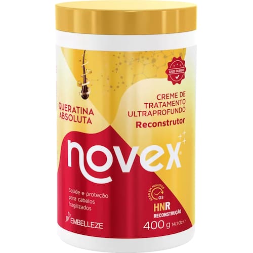 A Queratina do Novex é Hidrolisada, age penetrando profundamente e garantindo uma rápida absorção pelos fios, fortalecendo a estrutura e revitalizando poderosamente.